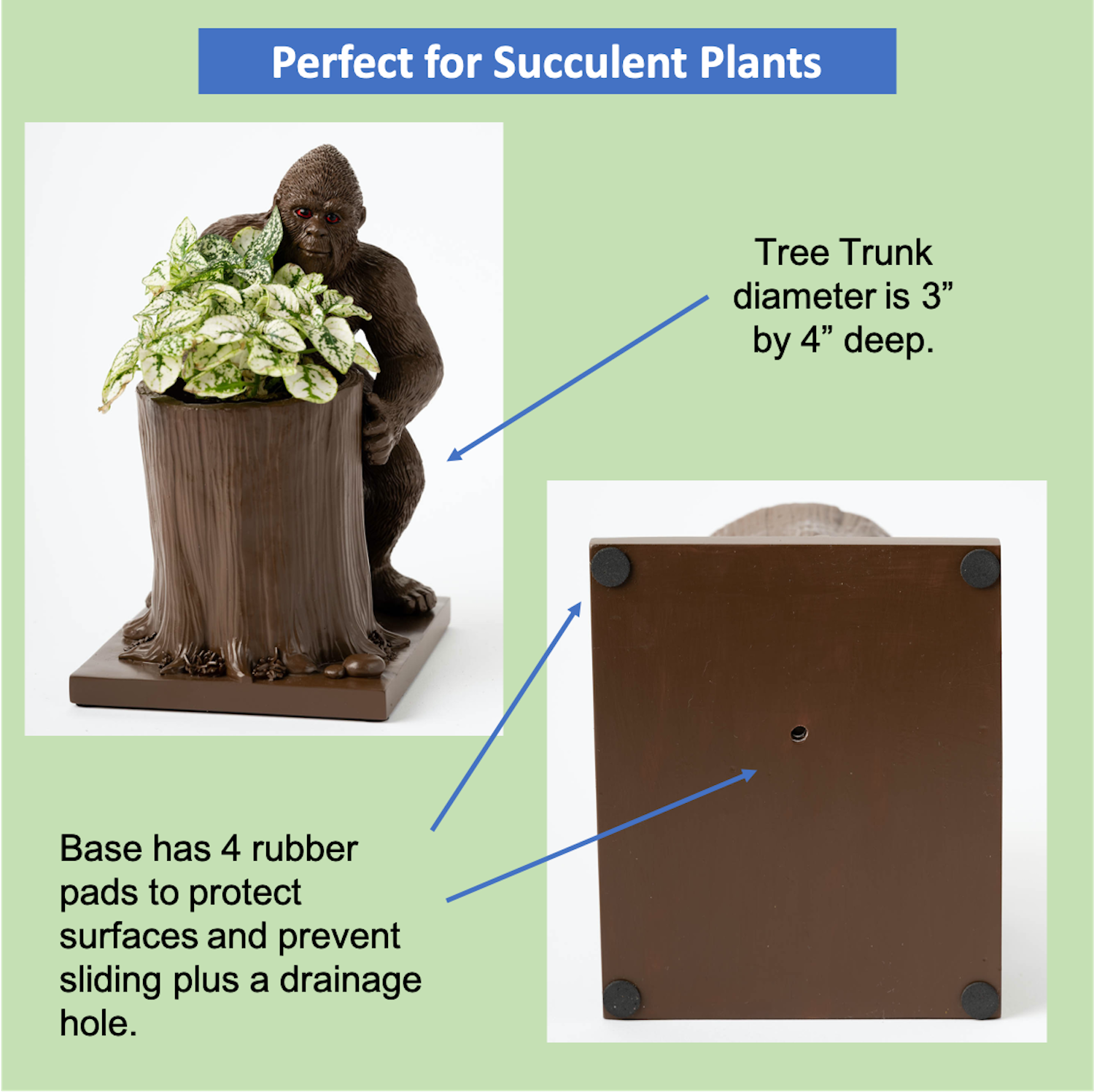 I’ve Seen Them, They’re Here – What’s that peering out from behind your small succulent pot? This creature’s eyes are dark in color and allegedly glow red at night. The tree trunk diameter is 3 in. by 4 in. deep with a drainage hole and suddenly makes your planter pots for indoor plants very squatchy.